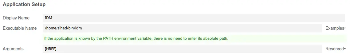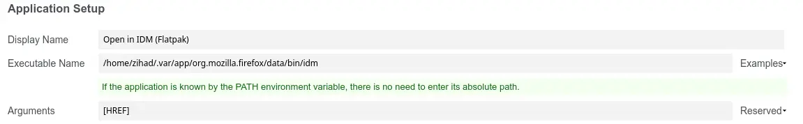 ~/.var/app/org.mozilla.firefox/data/node - Now from the Application setup Display Name: